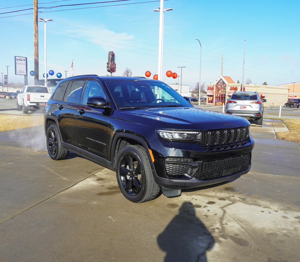 ENGINE: 3.6L V6 24V VVT UPG I W/ESS (STD),DIAMOND BLACK CRYSTAL PEARLCOAT,QUICK ORDER PACKAGE 23M ALTITUDE X -inc: Engine: 3.6L V6 24V VVT UPG I w/ESS Transmission: 8-Speed Automatic 8HP50 Altitude X Selectable Tire Fill Alert Remote Start System Rain Sensitive Windshield Wipers Wireless Charging Pad Heated Front Seats Black Headliner Power Sunroof Delete Laredo Badge 115V Auxiliary Power Outlet Gloss Black Exterior Accents Heated Steering Wheel Power Liftgate,GLOBAL BLACK CAPRI LEATHERETTE/SUEDE SEATS,TIRES: 265/50R20 BSW A/S LRR,TRAILER TOW PACKAGE -inc: Rear Load Levelling Suspension Full-Size Spare Tire 180 Amp Alternator 7 & 4-Pin Wiring Harness Heavy-Duty Engine Cooling 18 Full-Size Steel Spare Wheel Automatic Headlamp Levelling System Trailer Hitch Zoom Class IV Receiver Hitch,TRANSMISSION: 8-SPEED AUTOMATIC 8HP50 (STD),FRONT LICENSE PLATE BRACKET,WHEELS: 20 X 8.5 GLOSS BLACK PAINTED ALUMINUM -inc: Tires: 265/50R20 BSW A/S LRR,Four Wheel Drive,Power Steering,ABS,4-Wheel Disc Brakes,Brake Assist,Brake Actuated Limited Slip Differential,Aluminum Wheels,Tires - Front All-Season,Tires - Rear All-Season,Temporary Spare Tire,Heated Mirrors,Power Mirror(s),Rear Defrost,Privacy Glass,Intermittent Wipers,Variable Speed Intermittent Wipers,Rear Spoiler,Power Door Locks,Daytime Running Lights,Automatic Headlights,LED Headlights,AM/FM Stereo,Bluetooth Connection,MP3 Capability,Steering Wheel Audio Controls,Auxiliary Audio Input,Bluetooth Connection,Power Driver Seat,Driver Adjustable Lumbar,Power Driver Seat,Driver Adjustable Lumbar,Pass-Through Rear Seat,Rear Bench Seat,Adjustable Steering Wheel,Trip Computer,Power Windows,WiFi Hotspot,Keyless Entry,Power Door Locks,Keyless Start,Keyless Entry,Power Door Locks,Cruise Control,Adaptive Cruise Control,Climate Control,Multi-Zone A/C,A/C,Driver Vanity Mirror,Passenger Vanity Mirror,Driver Illuminated Vanity Mirror,Passenger Illuminated Visor Mirror,Floor Mats,Smart Device Integration,Requires Subscription,Smart Device Integration,Keyless Start,Power Windows,Power Door Locks,Trip Computer,Security System,Immobilizer,Traction Control,Stability Control,Traction Control,Front Side Air Bag,Telematics,Requires Subscription,Rear Parking Aid,Blind Spot Monitor,Cross-Traffic Alert,Rear Collision Mitigation,Lane Departure Warning,Lane Keeping Assist,Lane Departure Warning,Front Collision Mitigation,Tire Pressure Monitor,Driver Air Bag,Passenger Air Bag,Front Head Air Bag,Rear Head Air Bag,Passenger Air Bag Sensor,Knee Air Bag,Child Safety Locks,Back-Up Camera